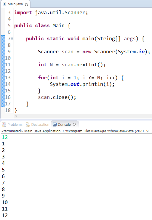 ์์ฐ์ N์ด ์ฃผ์ด์ก์ ๋, 1๋ถํฐ N๊น์ง ํ ์ค์ ํ๋์ฉ ์ถ๋ ฅํ๋ ํ๋ก๊ทธ๋จ์ ์์ฑํ์์ค.